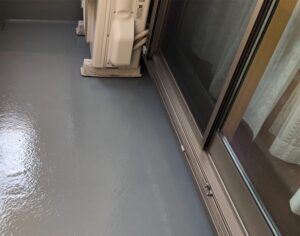 ベランダは雨に濡れる場所ですから、床には染み込んでいかないように防水がされてます。