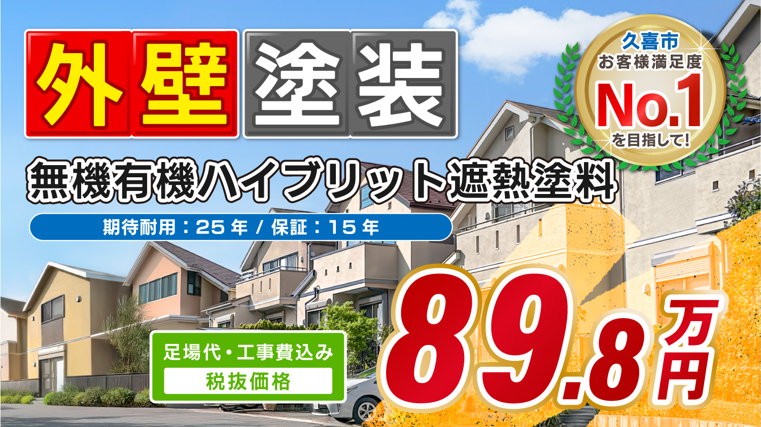 久喜市の外壁塗装メニュー ハイグレード遮熱プラン 89.8万円(税別)