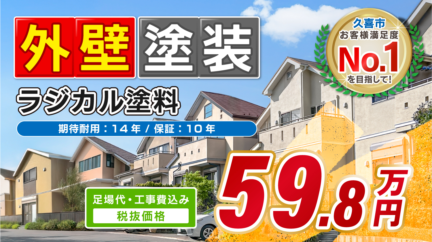 久喜市の外壁塗装メニュー スタンダードプラン 59.8万円(税別)